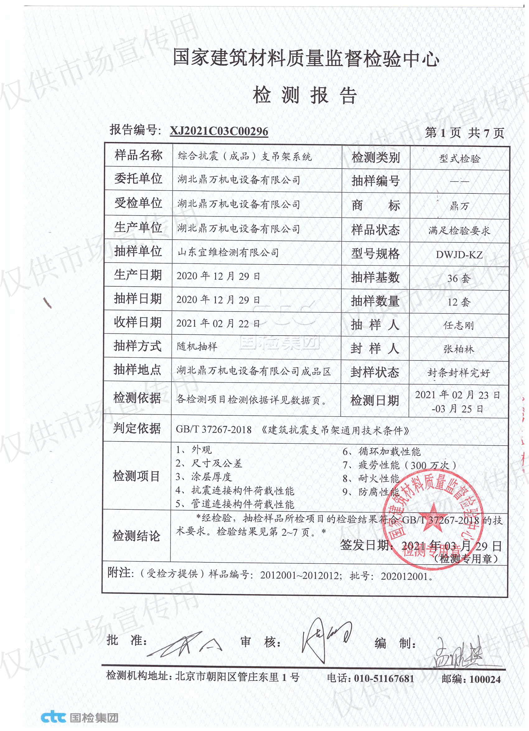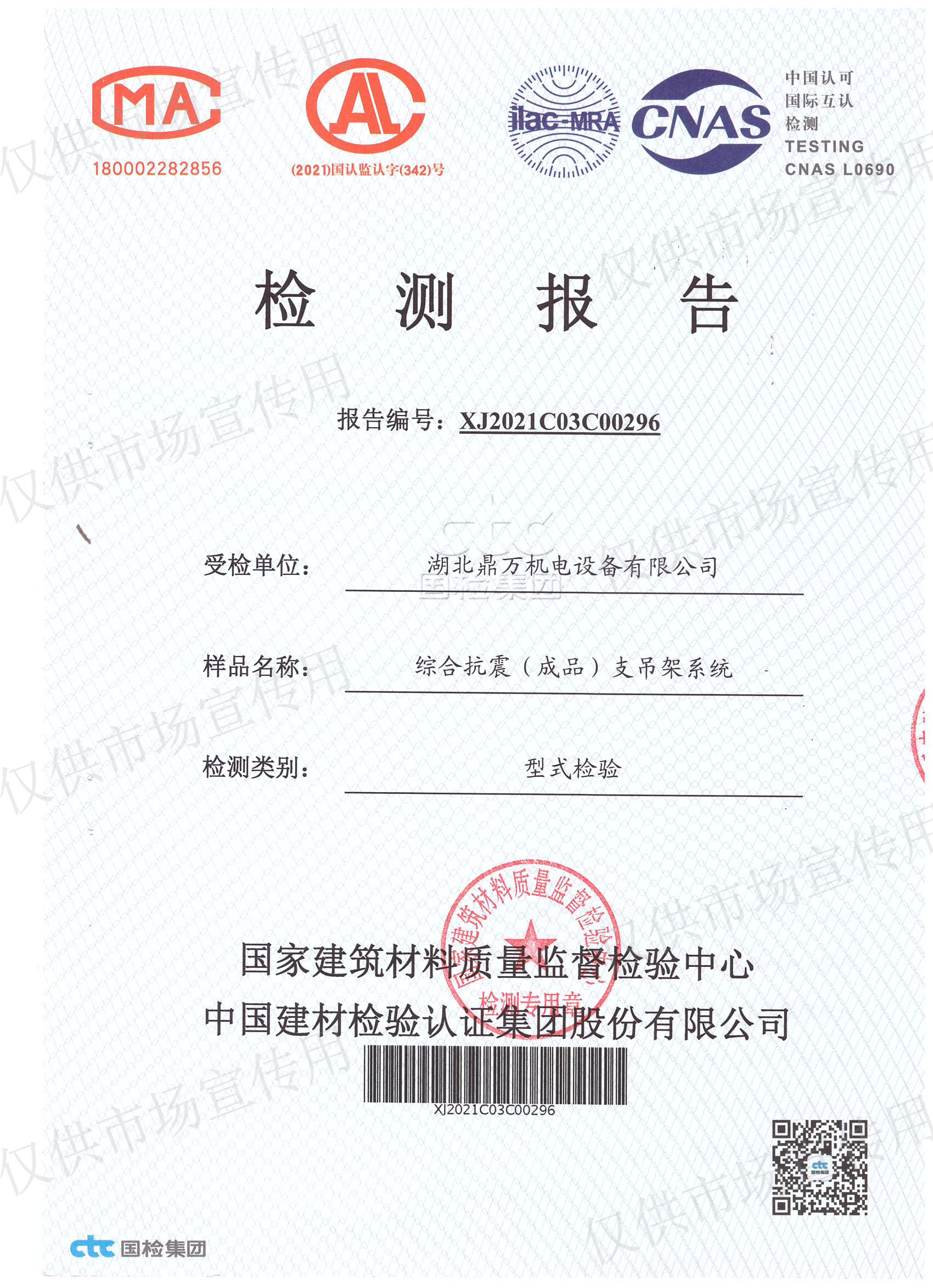 國家建材質檢中心型式檢驗報告
