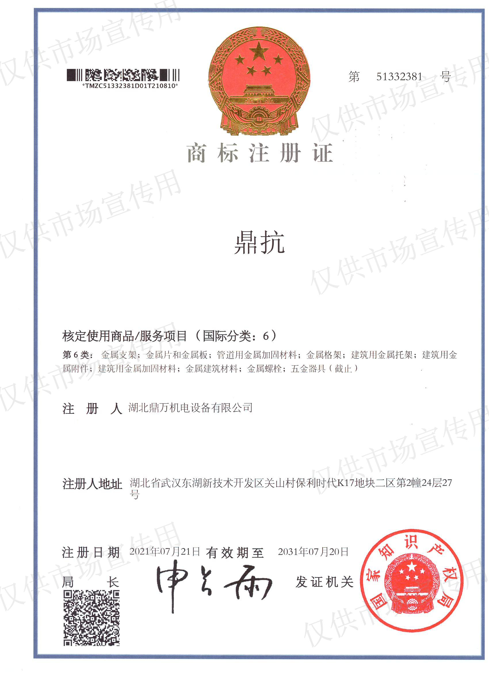 湖北鼎萬商標
